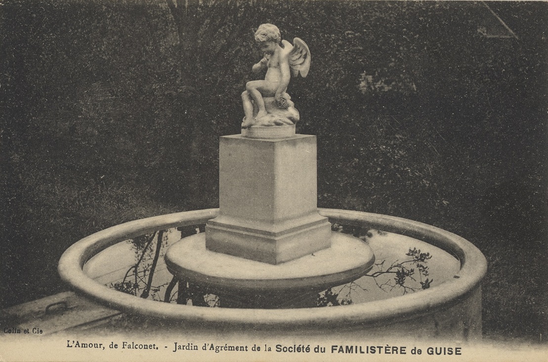 Carte postale : L'Amour, de Falconet. Jardin d'agrément de la Société du Familistère de Guise