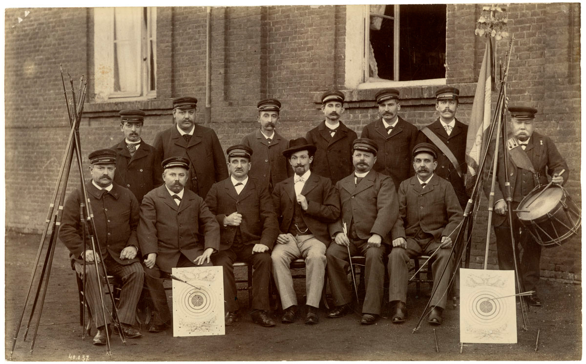 La société des archers du Familistère de Guise. Photographie de Jongh frères, 1899. Collection Familistère de Guise (inv. n° 1976-1-106). Crédit photographique : Familistère de Guise, 2018.