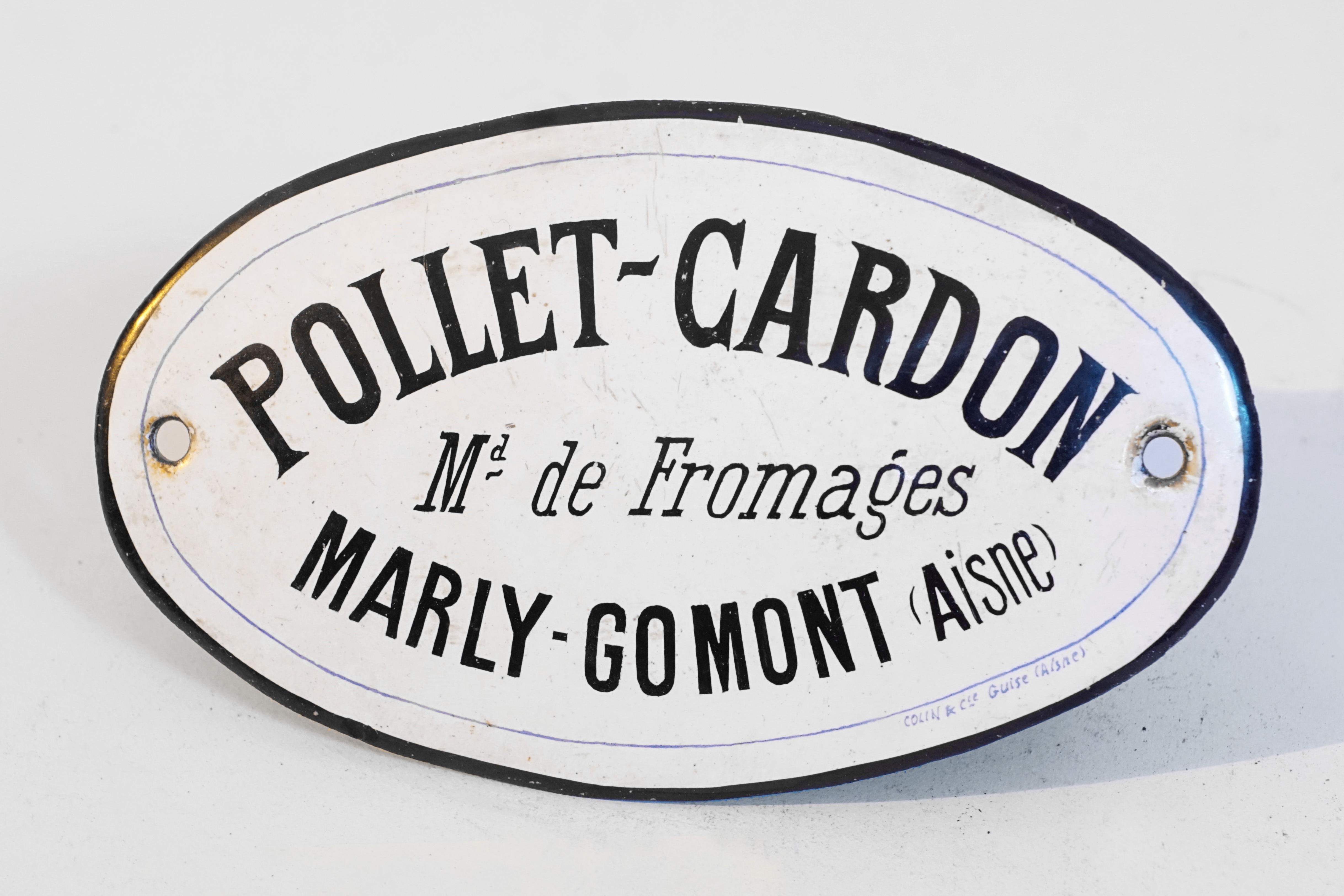 Plaque indicative : Pollet-Cardon, marchand de fromages à Marly-Gomont (Aisne)