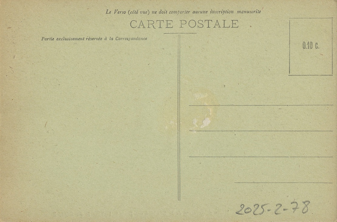 Carte postale : L'Amour, de Falconet. Jardin d'agrément de la Société du Familistère de Guise (verso), 1er quart du XXe siècle. Collection Familistère de Guise (inv. n° 2025-2-78). Crédit photographique : Familistère de Guise.