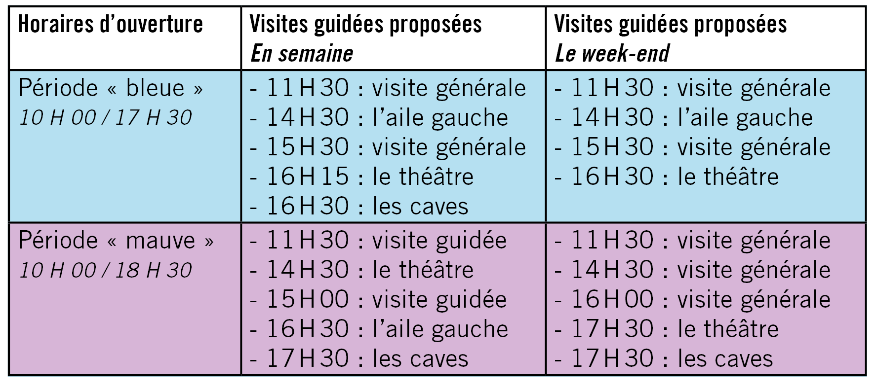 Les vacances scolaires de la zone B font l'objet d'un programme de visites particulières (à retrouver dans la rubrique "Agenda")